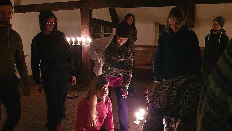 Diesmal sollten die Jahrsiebte thematisiert werden, und nach einem gemütlichen Abend mit Gesang und leckerem Essen, an dem man neue Menschen kennenlernte und sich mit den alten Gesichtern wieder vertraut machte, begann am Samstagvormittag der Workshop mit Ernst Schuberth. Ernst, ein ehemaliger Waldorflehrer, studierter Physiker und Mathematiker, Berater der Bundesregierung zum Thema KI und Pionier für Waldorfpädagogik und Anthroposophie weltweit, führte uns in das Thema „Jahrsiebte“ Schritt für Schritt ein. Ich hatte zwar schon einmal von den siebenjährigen Entwicklungsphasen, in denen im Ersten das Wollen und anschließend das Fühlen und dann das Denken im Vordergrund steht, gehört, durfte nun aber wirklich in diese Welt eintauchen und erkennen, wie viele Parallelen ich in meinem Aufwachsen in den letzten Jahren wiederfinden konnte. Ein besonderes Beispiel liegt für mich in der Faszination der Geometrie, die ich ab dem Beginn der sechsten Klasse entwickelt habe. Ernst Schuberth erklärte uns, wie Kinder zunächst durch Formenzeichnen und Formenlaufen an das Thema herangeführt werden, um schließlich diese Formen so zu verinnerlichen, dass sie sie fühlen können. Gerade das kann ich bis heute nachempfinden. Geometrische Formen lösen in mir, je nachdem welche, ein Gefühl aus, das ich direkt mit ihren Eigenschaften verbinden kann und das mir hilft, mich den mathematischen Problemen zu nähern. Das war für mich bisher auch selbstverständlich, dass es dafür jedoch eine pädagogische Grundlage gibt, hat mich sehr fasziniert. Ähnlich verhielt es sich mit den Farben unserer Klassenräume in den jeweiligen Jahrgangsstufen, Persönlichkeitsfacetten in bestimmten Altersstufen und vielem mehr.