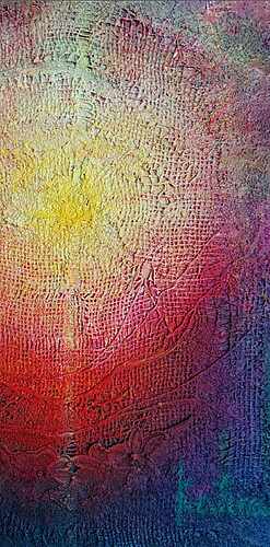 In ihren Bildern versucht sie sich mit Hilfe der Farben diesem Thema anzunähern, in Verbindung mit Kunsttherapie, Biographie- und Karma-Arbeit. Mit neuen Ausdrucksmöglichkeiten erforscht sie Lösungen, aus dem inneren Bedürfnis nach schöpferischer Tätigkeit. Diese verborgene Wandlung ist der Malerin erst während des künstlerischen Prozesses bewusst geworden.