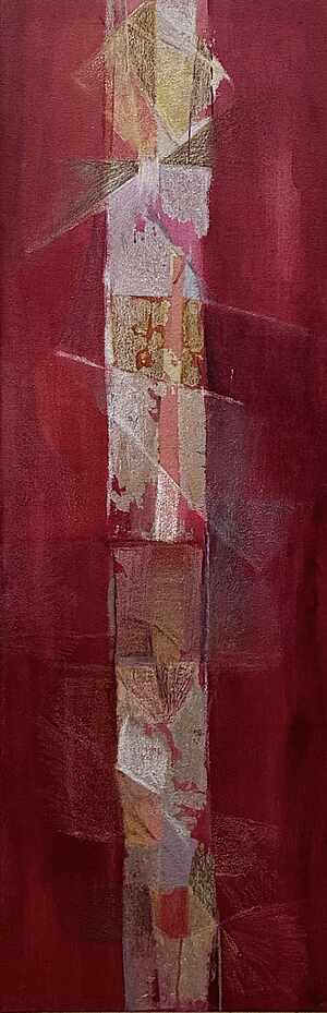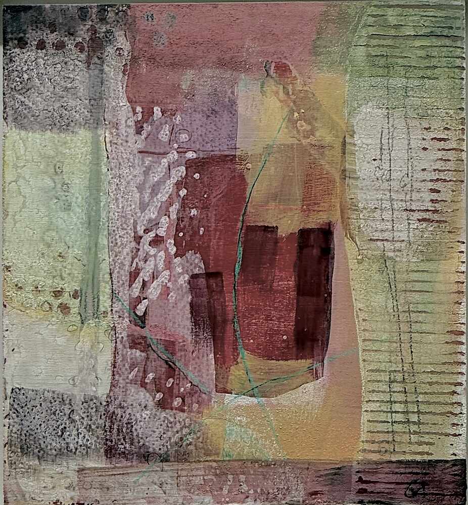 Die erste Ausstellung von Gabriele Arndt im Rudolf Steiner Haus hatte den Titel „Fensterbilder“. Bei diesen Bildern ging es darum zu beobachten, wie wir in die Welt hinaussehen. Und es ging darum zu beobachten, wie unser Inneres auf die Außenwelt reagiert. Der Titel „Fensterbilder“ kam zustande, weil Fenster uns einerseits einen Blick in die Welt erlauben. Andererseits kann man durch ein Fenster auch ins Innere, in die „Behausung“ hineinsehen. Diese doppelte Möglichkeit den Blick auszurichten, wurde der Künstlerin im Laufe der Zeit immer wieder neu zur Frage.